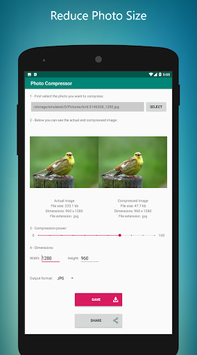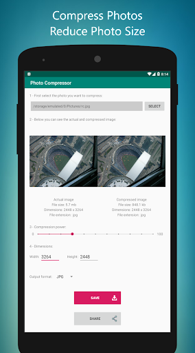 With Photo Compressor app, you can resize, compress photos and reduce your photo size.
