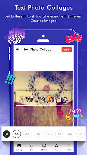 Text Photo collage Maker Give you different text style photo, background textures, Stickers with efficiency to