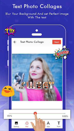 Text Photo Collages Maker is an amazing text application helps you Create Picture Collages with Text, People Text Messages