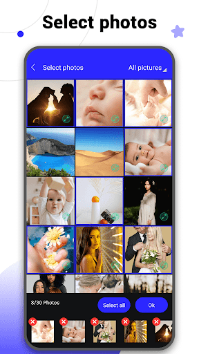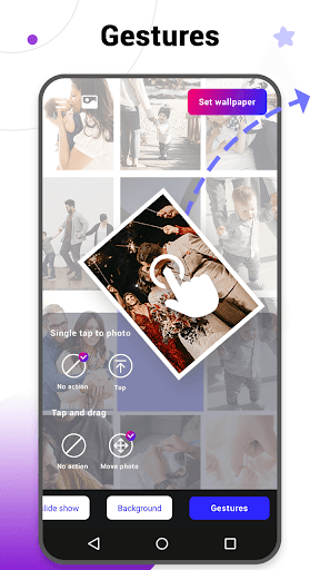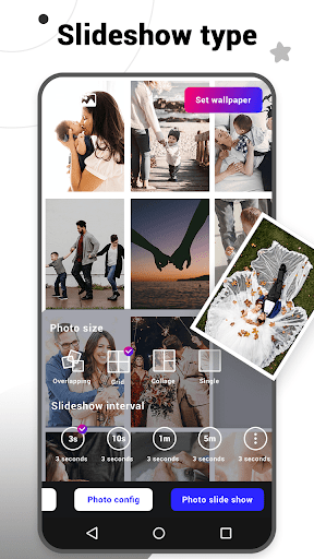 ★ Photo Live Wallpaper has multiple slideshow type to show the photos: Overlapping, Grid, Collage or Single photo.