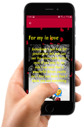 For this application is the tool that will help us to dedicate an image of love and thus be able to express our most hidden feelings, with phrases of forbidden love.