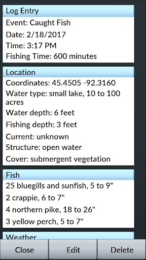 • A detailed fishing log - keep track of what you caught where, when, and how