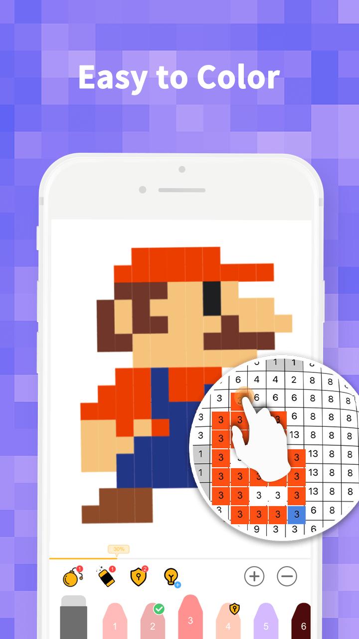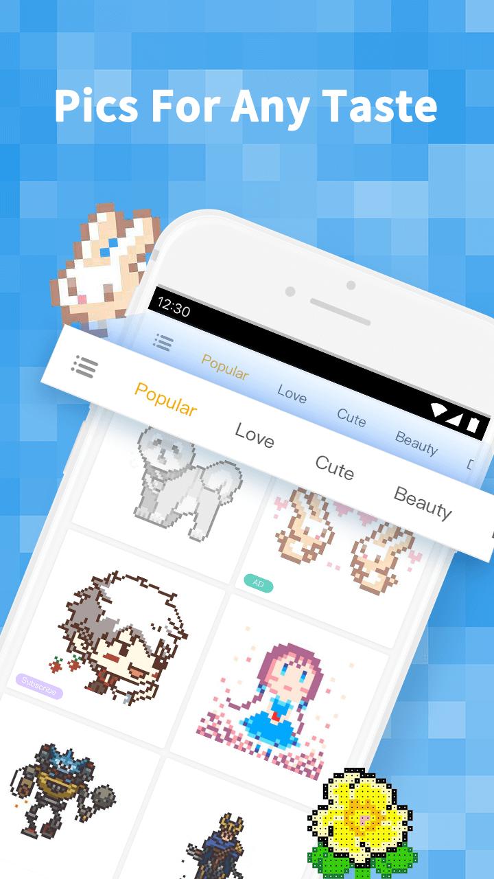 The pixel draw game is popular with people of all ages. You just need color by number and you can draw beautiful pics without any drawing skills. You can create your own artworks easily.