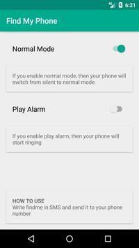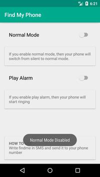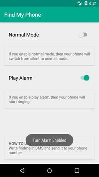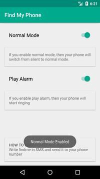 If Both “Normal mode” and “Turn Alarm” are enabled in Find My Phone App, your android phone will come into normal mode and start alarm.