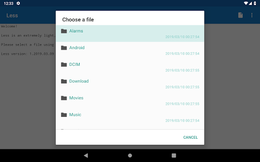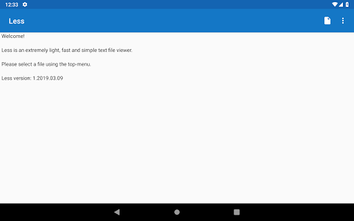 /bin/less (or /usr/bin/less if you have one of those distributions) functional equivalent for Android -- view a file -- nothing more, nothing less.