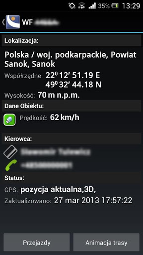 - Nawiązanie połączenia telefonicznego z zalogowanym kierowcą bezpośrednio z aplikacji,