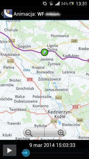 - Wyświetlenie animacji trasy za okres ostatnich 3 miesięcy,
