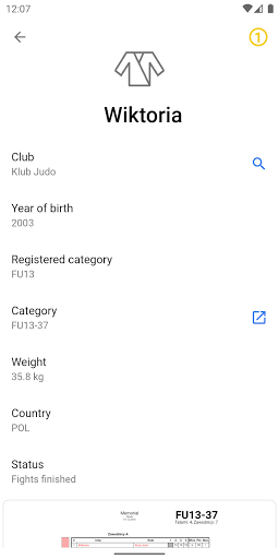 You don't need to check the screen with next fights and ask someone what place takes another competitor. This app makes it for you. Using Judo Mobile app you can check: