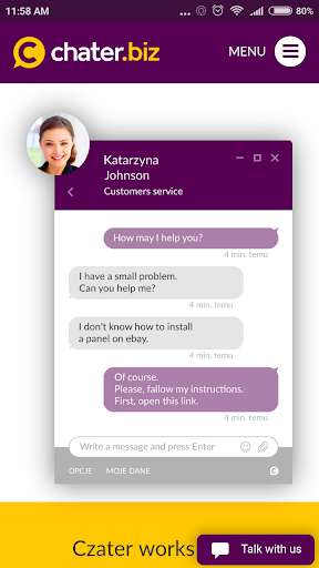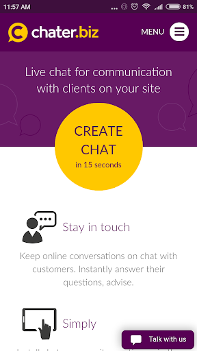 Chater.biz is a livechat, which is a communicator to contact with customers on the website, shop, blog.
