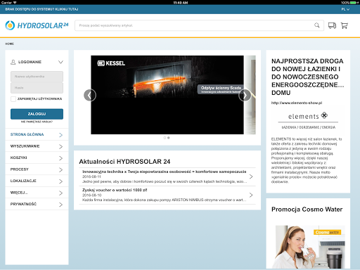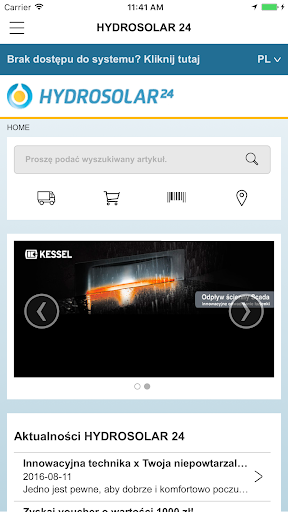 Aplikacja HYDROSOLAR24 Mobile to łatwy i wygodny dostęp z poziomu urządzeń mobilnych do ponad 200 tysięcy produktów znajdujących się w ofercie Grupy Hydrosolar. Wystarczy zalogować się przy pomocy Identyfikatora i Hasła, którego używasz do logowania się w tradycyjnej wersji serwisu internetowego hydrosolar24.pl. Dzięki aplikacji mobilnej o każdej porze i z każdego miejsca możesz błyskawicznie sprawdzić dostępność i ceny produktów w interesujących Cię lokalizacjach HYDROSOLAR, złożyć zamówienie i nadać towar w konkretne miejsce inwestycji. Aplikacja HYDROSOLAR24 Mobile to również wiele innych przydatnych funkcji, które z pewnością docenisz w codziennej pracy: