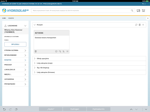 Aplikacja przeznaczona dla klientów Grupy Hydrosolar posiadających dostęp do systemu internetowego HYDROSOLAR24. W celu uzyskania dostępu do HYDROSOLAR24 skontaktuj się z naszym Przedstawicielem Handlowym.