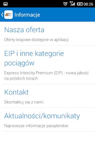 With IC Mobile Navigator it is possible to buy tickets of PKP Intercity for direct connections and to check the punctuality of trains and their present positions. It is also possible to get latest information about present PKP Intercity offer.