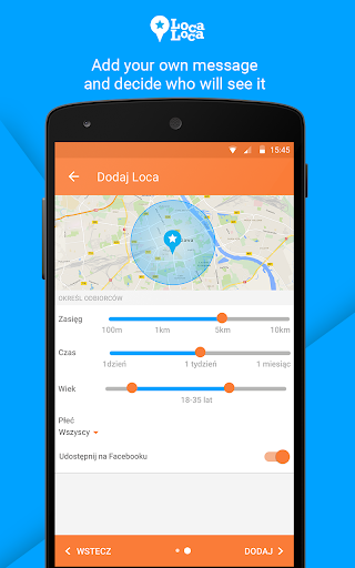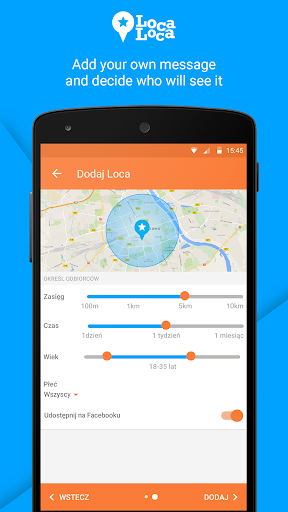 WE CARE ABOUT YOUR PRIVACY – that’s why messages published by the users of LocaLoca can be viewed on the map, but with an approximation that makes it impossible to determine the precise location of the user. When you log in with Facebook – other people can see only: your avatar thumbnail, your first name and the first letter of your last name.