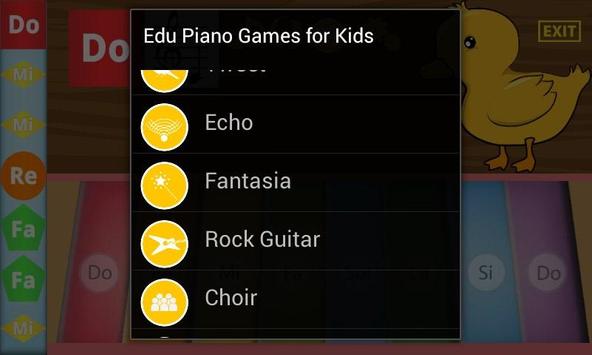 Anak Anda bisa memilih dua jenis instrumen: gambang dan piano. Ada juga kemungkinan untuk memilih antara banyak suara, seperti anjing, kucing, Agogo, woodblock, lonceng dan banyak lagi.