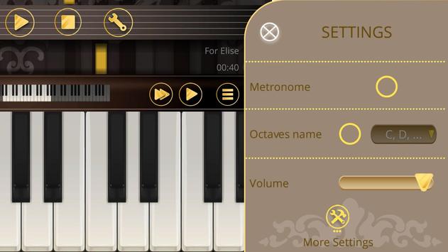 Aplikasi ini juga dapat digunakan sebagai piano tanpa modus belajar. Anda dapat mengatur jumlah tuts piano terlihat dari 8 sampai 16. Jika lebih nyaman untuk Anda, mengatur tanda kunci. Anda juga dapat mengaktifkan metronom.