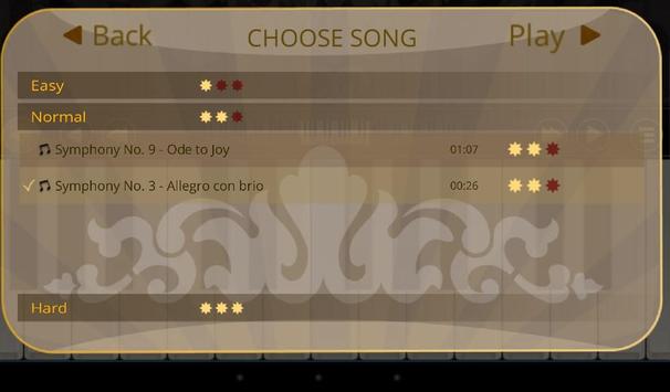 Di Career Mode Anda harus memilih sebuah lagu dari daftar dan klik tombol putar. Klik pada tombol biru disorot dan memainkan seluruh lagu! Aplikasi ini akan menilai kinerja Anda. Menjadi juara dan mendapatkan 100% untuk setiap Piano dimainkan Beethoven!