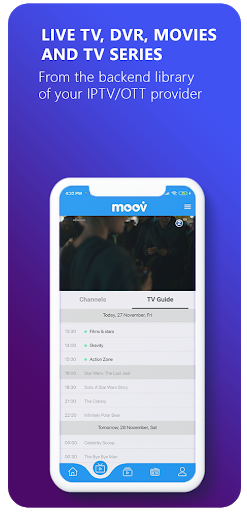 • The MOOV APP doesn't contain any TV or Movies contents, it is intended for IStream Middleware TV platform Demo.