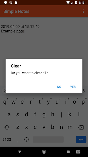 The simplest way to make notes on your phone. All in one window! If you want yo can add date and time with one click of a button and clear all the notes with another click.