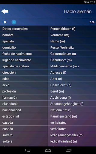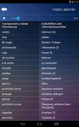 * App is for people who know SPANISH and want to learn the basics of GERMAN language.