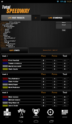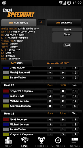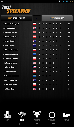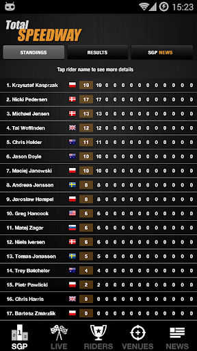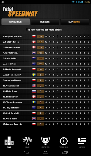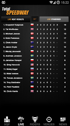 √ Riders - live updated points