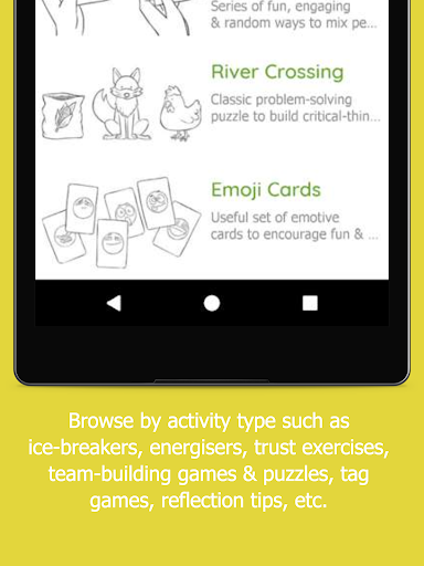 In short, this app will help you find the perfect group activity to quickly engage your group & have fun.