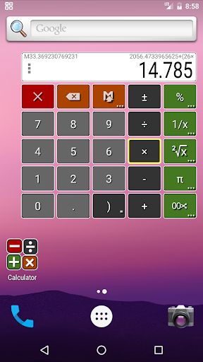 The calculator appears in front of any application running on your device. You can interact with any contents behind it, move it into any place on the screen or hide the calculator's keypad.