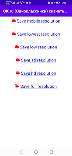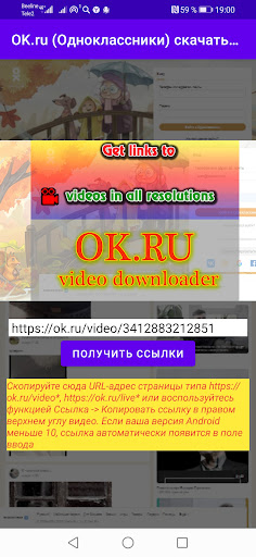 Apresentamos uma ferramenta para preservar seus vídeos favoritos com a popular Rede Social Ok.ru (Odnoklassniki).Você pode usar o aplicativo se não quiser esperar para baixar vídeos em um modo online - usando apenas um clique, receberá links para arquivos MP4 em todas as licenças disponíveis (móvel, mais baixo, baixo, SD, completo).O download começará automaticamente após o cruzamento do hiperlink (você receberá um sinal de som no final da inicialização, dependendo das configurações do smartphone).O trabalho rápido do script é garantido pelo uso da API original do ok.ru (na versão atual)
