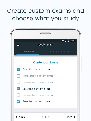 The app utilizes the “spacing effect” to enhance your learning capability. You’ll space out your studying into shorter, more productive study sessions which allow your brain to retain more information. Simply tell the app how many questions you want to take, enable the timer, and filter exam content to create the perfect study experience.