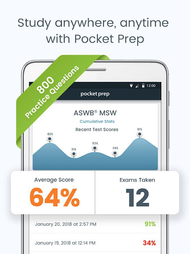 Pocket Prep’s Master of Social Work (MSW) practice test app is a powerful exam simulator that allows you to create customized practice tests with detailed answer explanations for every question. View your results and exam history with just a few taps. Study anywhere, anytime without Internet connectivity.