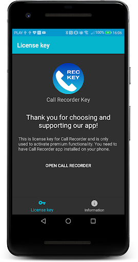 Call Recorder Key is app that remove Ads from Call Recorder free app and also activate Premium functionality: