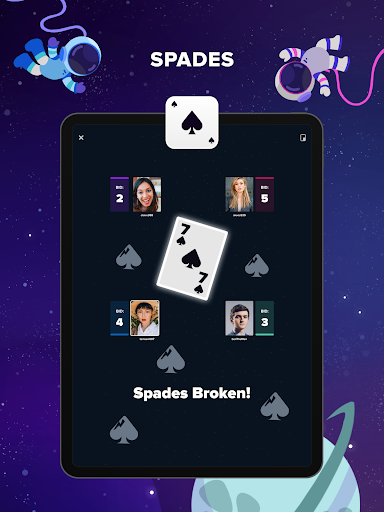 • SPADES - The classic card game you play in pairs. Try using telepathy to communicate with your partner without alerting your opponents. Get ready to take tricks, but be sure not to take too many bags!.