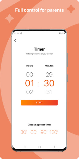 - A timer helps you set your kid’s screen time and balance the time allowed to watch videos on the app with other family activities.