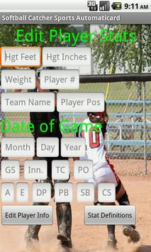 This app allows you to keep track of your catching stats as you progress through a softball season. It also allows you to take a photo and create a softball card that displays your photo and stats. For proper display of the card, make sure that the auto-rotate screen setting is enabled and hold the phone in the portrait orientation. Designed for 320x480 smartphone screens.