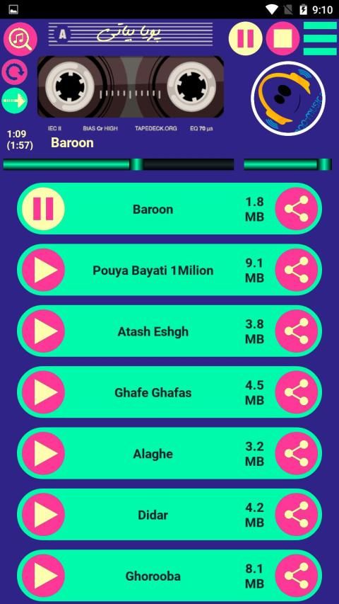 هنا تتيح لك تطبيقات اندرويد مثبتة في هاتفك موبايل 30,000+ مستحدمين يحملون تمام آهنگ های پویا بیاتی