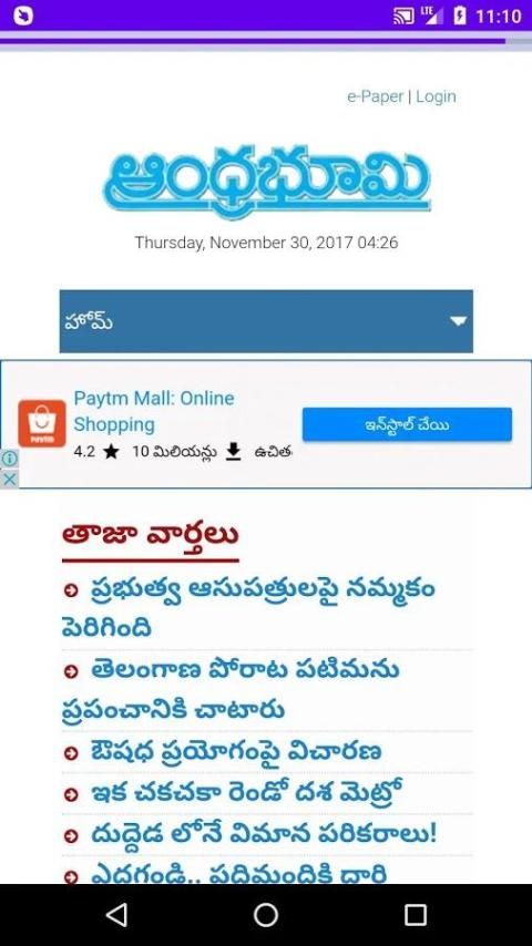 You can read all Telugu Newspapers and ePapers in this one app. Fast loading, beautiful look, good performance and all Newspapers and news portals are available. You can also save newspapers for offline reading without internet.