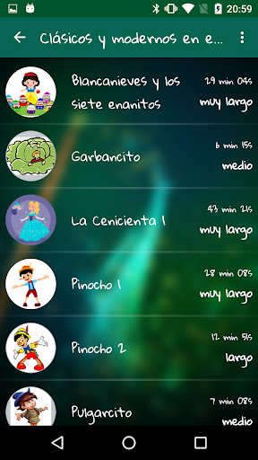 172 audio stories are included for the little ones of the house 👦 👧, both long-running fables and small morals that can be heard in a few minutes. And there are also many stories in English to start educating the hearing of the little ones.