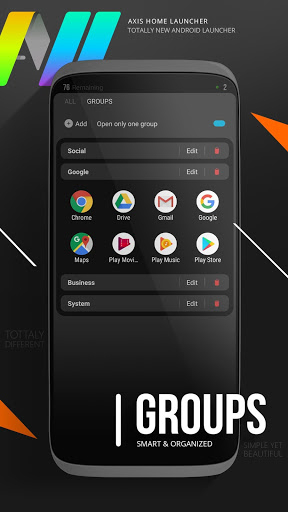 • Smart Groups: organizing apps is great for easy access. that's why we created Groups, you don't need to create folders anymore. Groups are there waiting for you to use them. You can use only one or all of them, Groups knows how many groups you used and it will only show them to you.