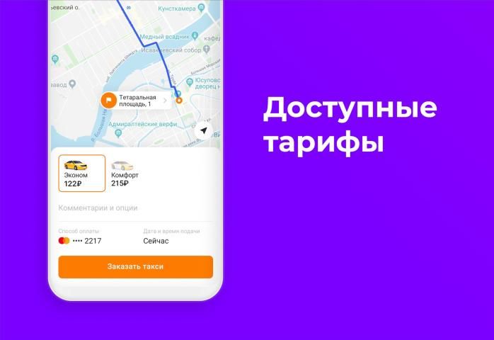 Мы сделали приложение для вызова такси с удобным для вас способом оплаты – наличными или банковской картой.