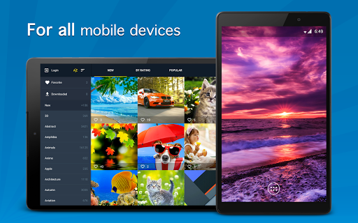 The system will select wallpaper resolution, suitable precisely for the screen of your phone or tablet. All the mobile devices are supported, including Ultra HD (UHD) resolution and Retina screens.