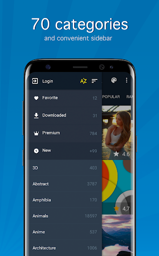 A convenient side menu consists of 65 sections, which include only HD, QHD and UHD quality wallpapers and backgrounds. After choosing a picture, you can download it, add to your favorites or immediately set up as a background image on your phone or tablet. All the pictures can be set up as lock screen wallpapers.