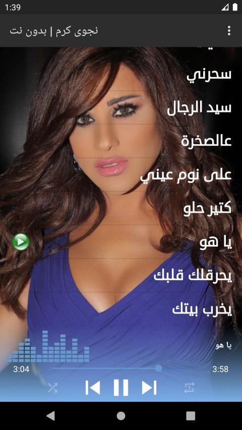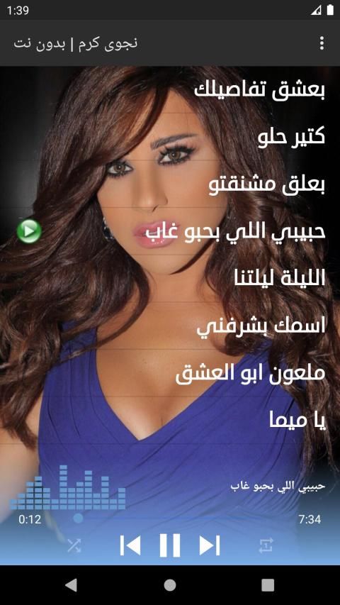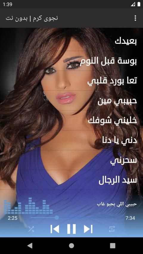 نجوى كرم 2019 | بدون نت يتضمن التطبيق الاغنيات التالية: