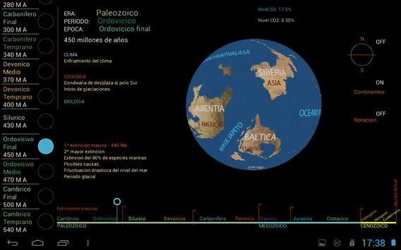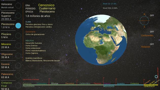 Visualiza las eras geológicas, los movimientos de los continentes, la creación y destrucción de océanos.