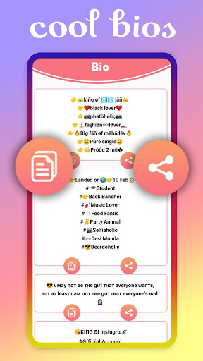Hello Friends we developed this application for social media users. we are providing you lots of bio related to your profile we add attractive profile frames for edit your profile picture very gorgeous and unique.in addition this edited picture use for post and story. this application is totally free for all user. and best point of this application is its very small in size.