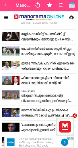 Clean, Fast and less Ads. Best App for Malayalam News in India.