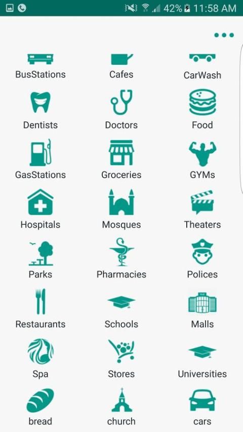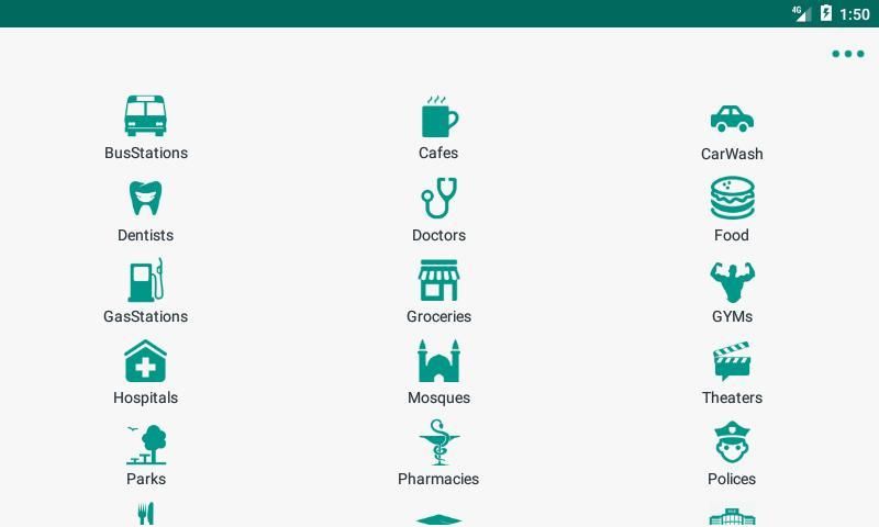 Using the application guide you can find the following things close to you in one click: