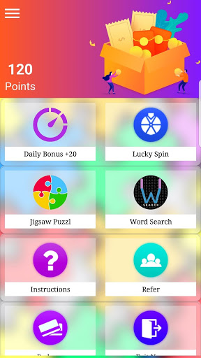 spin and win, watch videos, refer to a friend and play real money games