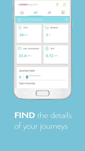 All Citroën models are compatible with the MyCitroën application. However, if your vehicle is not equipped with Bluetooth, the ‘Driving’ tab (which provides details of your journeys, fuel consumption and mileage) is not displayed. You can still enjoy all of the other features of the app.