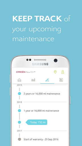 The MyCitroën application will display data specific to your vehicle including the fuel level^, mileage^ and reminders of when scheduled servicing is due.