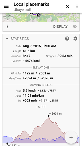 Save and retrieve placemarks, share them with your friends. Track your path, get advanced statistics and interactive graphics. You won’t have anymore questions about what you can accomplish.