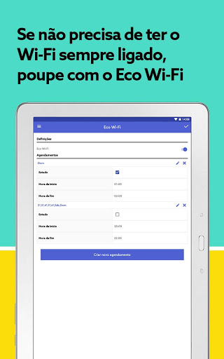 - Eco Wi-Fi: Defina um horário para ter a rede Wi-Fi ligada e desligada conforme o seu perfil de utilização